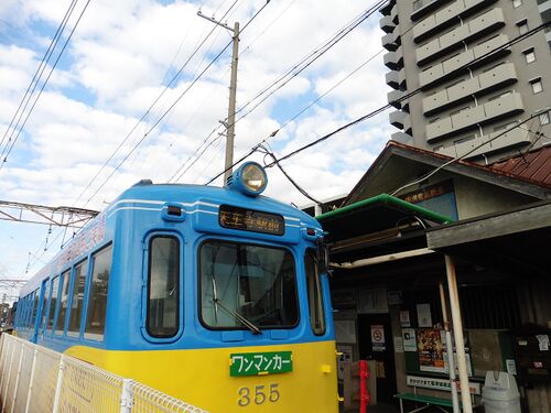 安立町を定刻よりも遅れて発車した浜寺駅前行きでしたが、終点にはほぼ時刻通りに到着。乗車時間は30分弱でした。浜寺駅前からは、ごく近くにある南海本線の浜寺公園に向かい、再び「スルッとKANSAI」を使って移動します。 右奥に見えるのが浜寺公園駅旧駅舎…