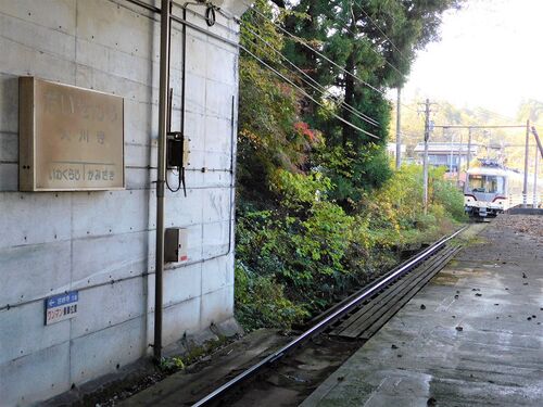 見どころ多い岩峅寺駅ですが、11:00着-55発というのはさすがに長かったので、上滝線のワンポイント乗車を挟むことにしました。11:32発に乗ってどこかで下車し、岩峅寺11:52着の列車で戻るというもの。これが可能なのは、大川寺、上滝、大庄の3駅でした…