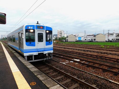 桑名で快速に乗り換えて15分。南四日市で下車しました。 亀山行き快速列車(南四日市17:56発)当駅では17:55着-18:18発と時間的に程よい感じ。旅客列車に関してはホームは1面2線とコンパクトですが、貨物用の線路が何本もあることから構内はかなり広…