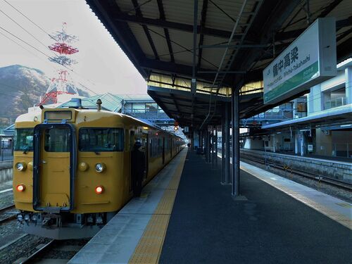 本竜野から津山までの間、乗り換えは2回。播磨新宮では16:56着-58発で佐用行きに、佐用では17:27着-43発で津山行きにそれぞれ乗り換え、終点の津山には18:43に着きました。乗換時間を含め、本竜野から約2時間。姫新線の長さが実感できました。播磨新…