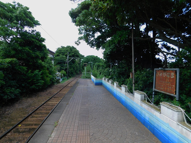 1面1線で駅舎もないシンプルな駅ですが、ホームを囲う低いブロック塀とその塗色の青、出入口に立ち並ぶモニュメント状の白い角柱など、それとなく絵になるのが当駅の特徴。そんな駅のあれこれを見たり撮ったりするうちに、少なからず時間が経っていました。